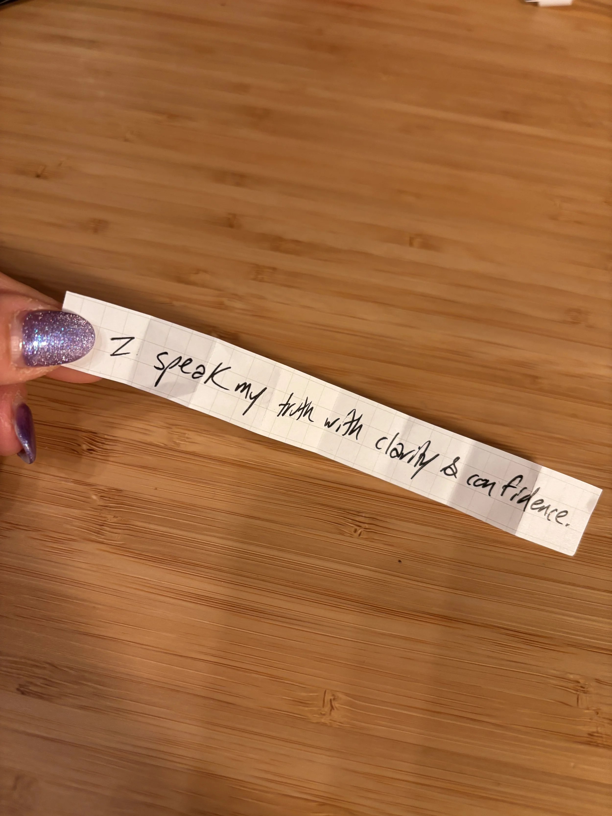 The wish reads: âI speak my truth with clarity and confidenceâ. This truly is one of my deepest wishes and simultaneously one of my greatest fears. But when I read it, I knew that it was important to pursue.